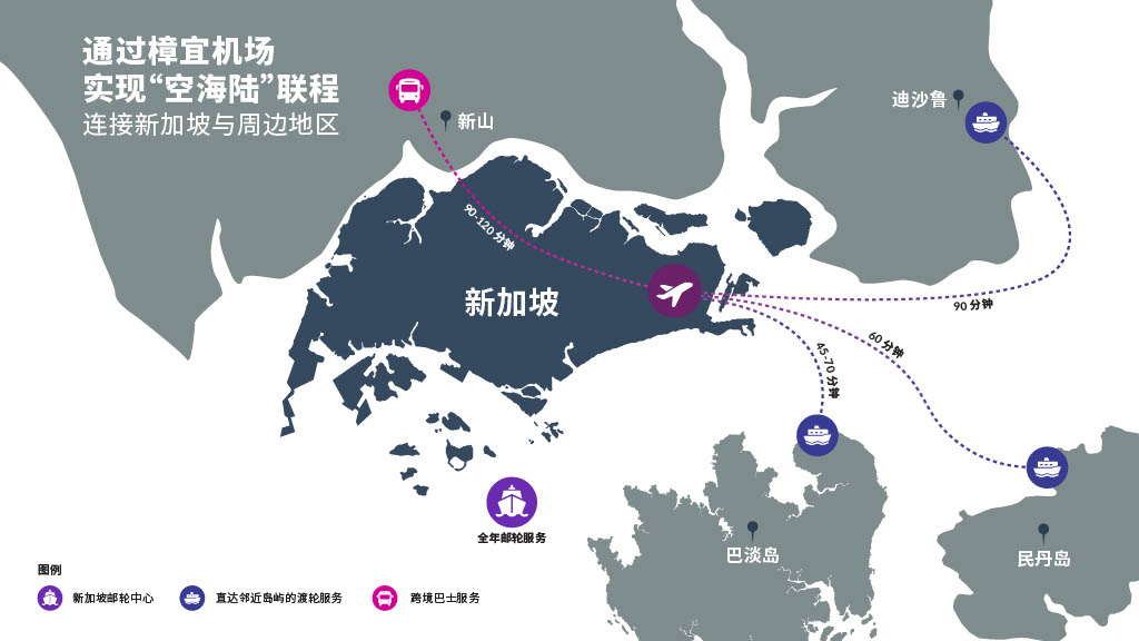 无论您是准备前往新山,还是飞往民丹岛、巴淡岛或迪沙鲁等邻近岛屿,樟宜机场都能通过无缝衔接交通,让您的后续旅程轻松无忧。